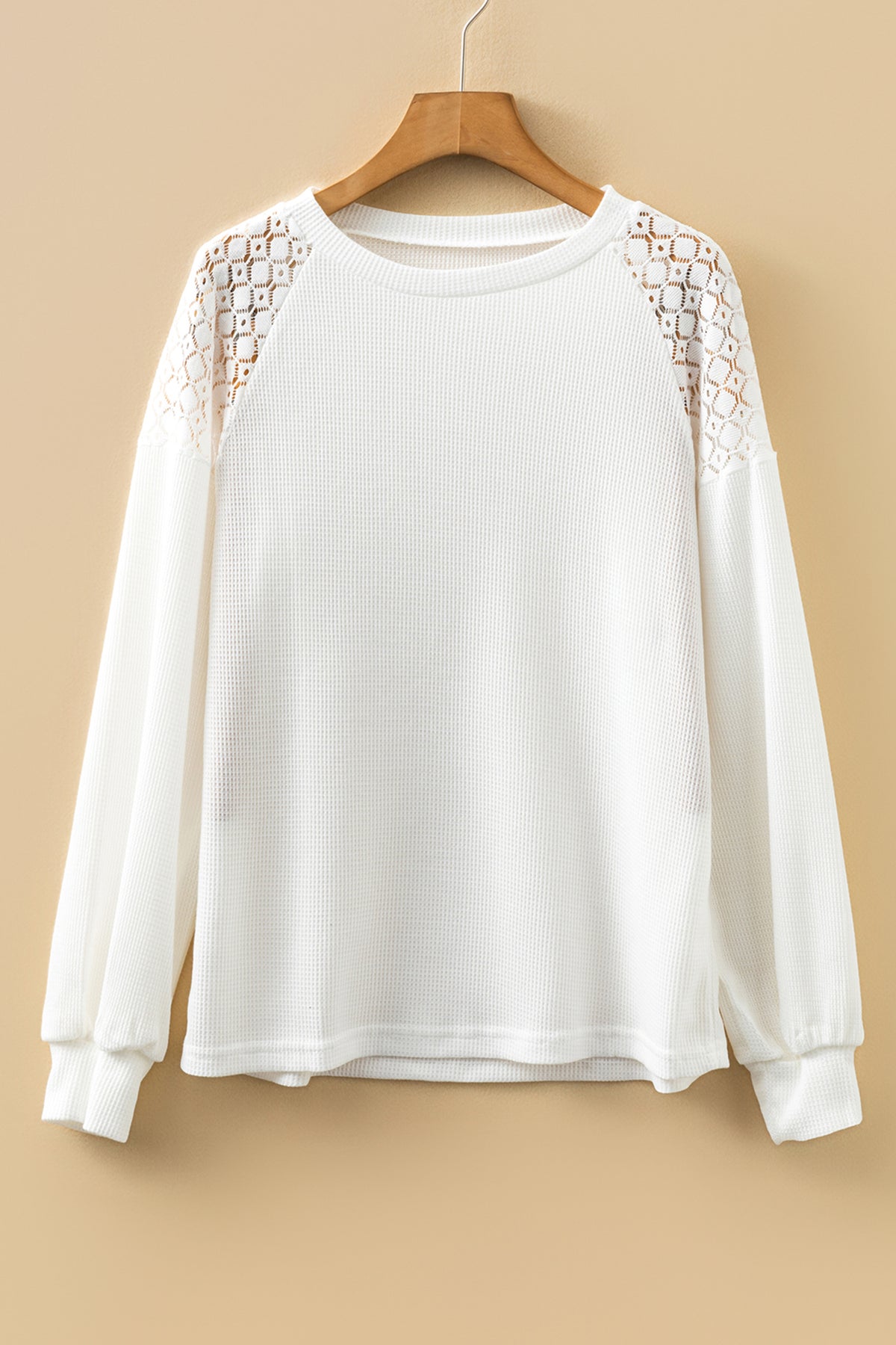Meet Ava Sleeve Textured Pullover Long Sleeve Top—effortless, flattering, and easy to style for everyday life. Add some feminine chic to this waffle-textured top with lace details It's a casual pullover with a round neck, puff sleeves, and loose fit Made of quality materials with good stretch to suit different body shapes well This simple but unique design is well-received by modern women long sleeve t-shirts are in great demand for the new season