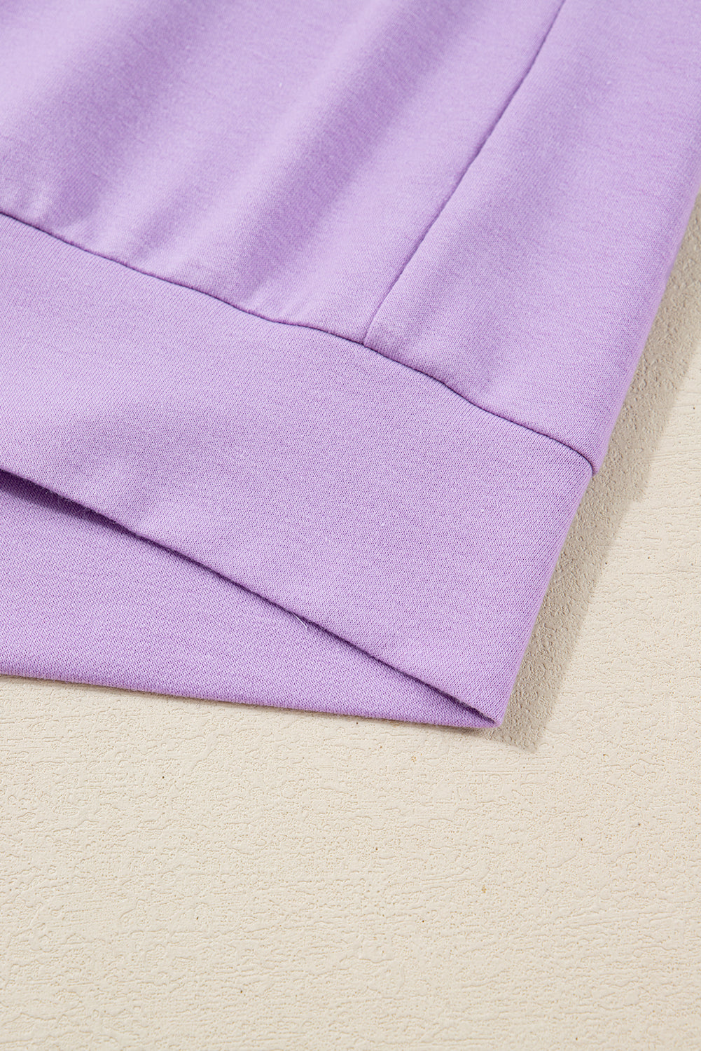 Purple Stripe Patchwork Buttoned Drop Shoulder Plus Size Pullover