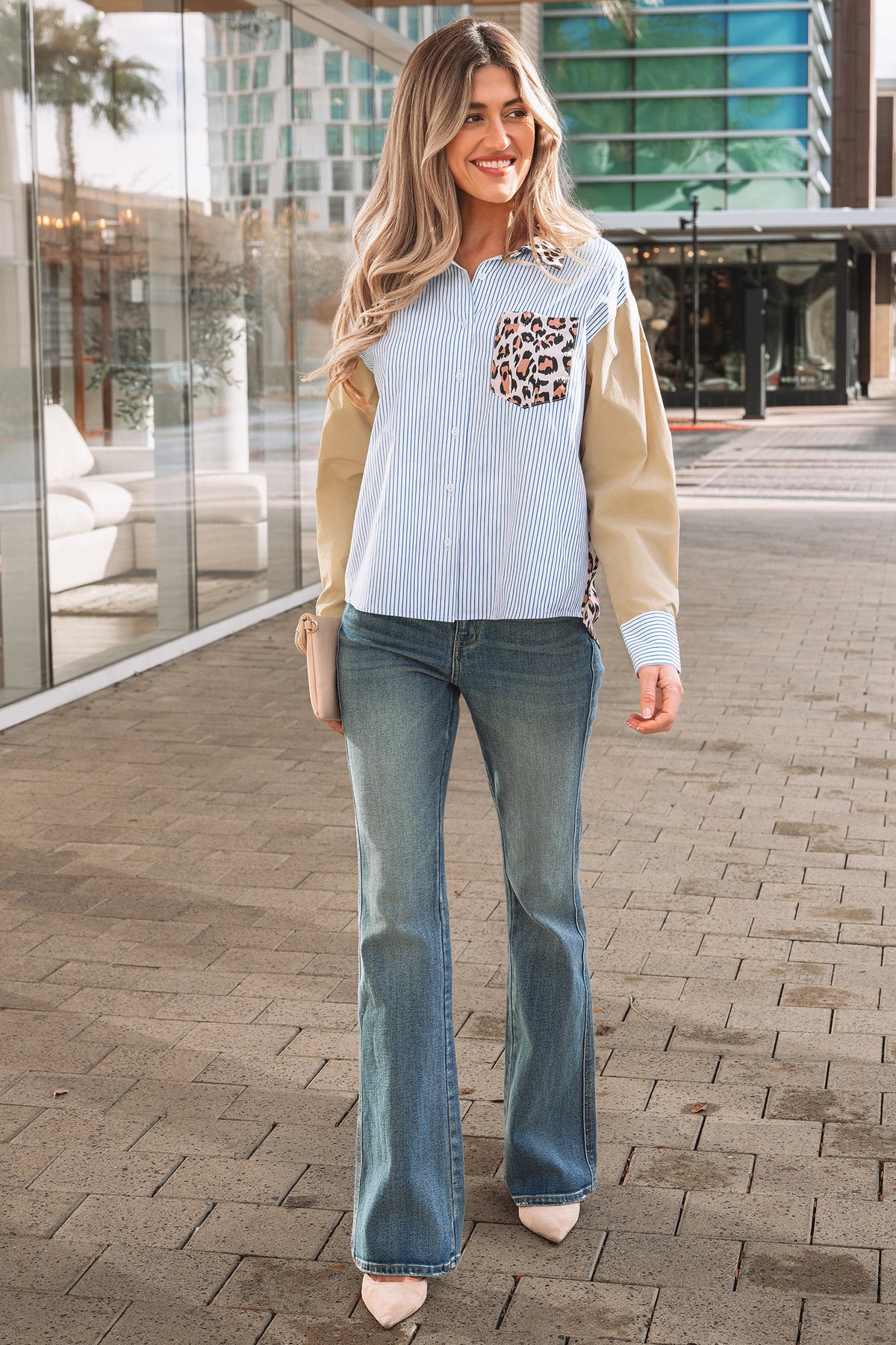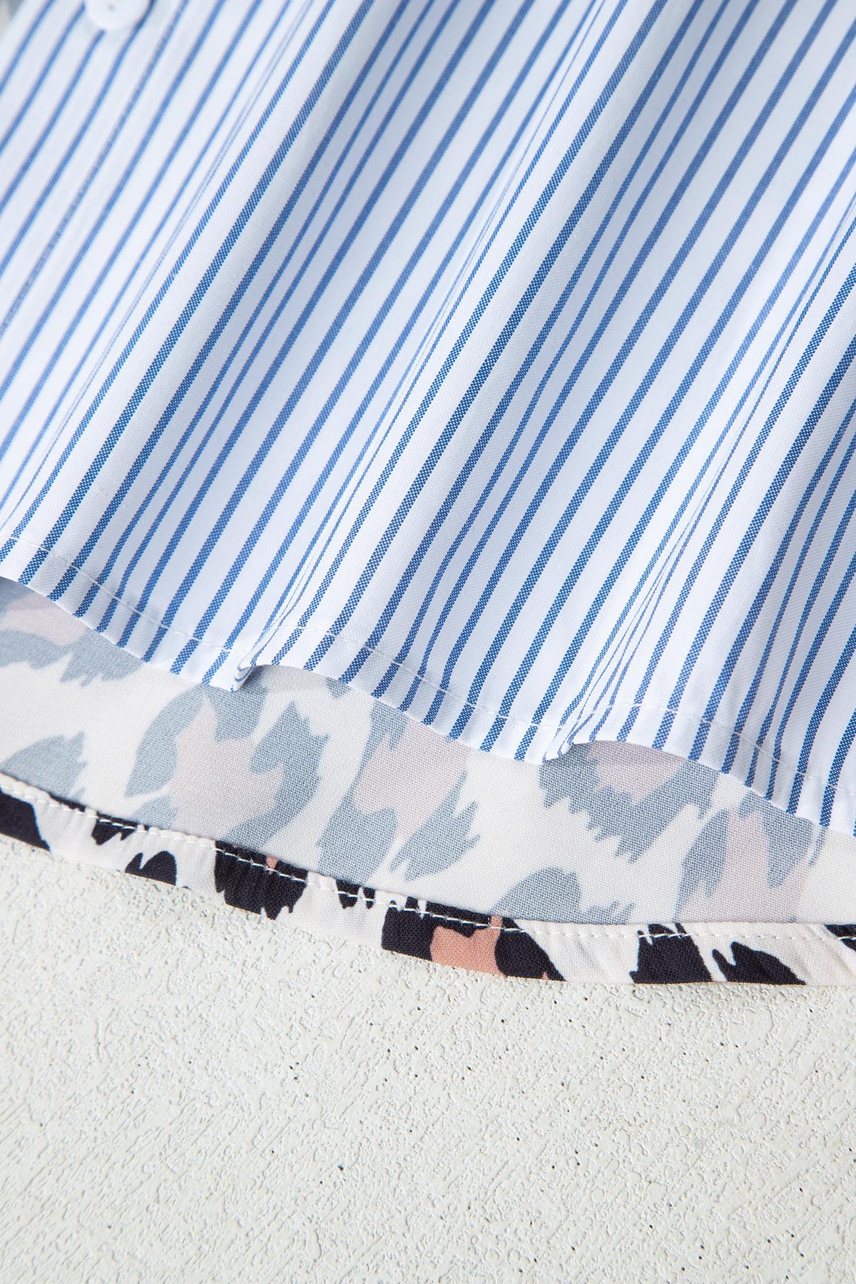Aleia Chest Cuffed Sleeve Shirt brings you easy comfort with just the right touch of everyday style. The leopard print patchwork adds a bit wild touch to this striped shirt. Colorblock design brings modern, fashionable contrast. Chest pocket detail offers practical flair and casual charm. Cuffed sleeves enhance structure and polished finish. Material: 59%Polyester+41%Cotton.