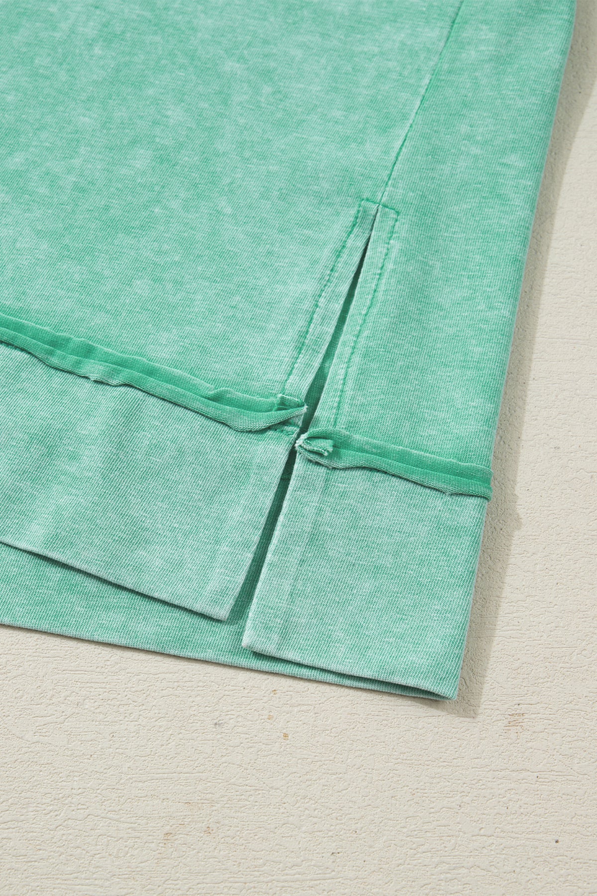 Make Holland Mineral Wash T Shirt your grab-and-go choice for effortless, everyday dressing. Mineral wash finish adds vintage appeal to this womens T T-shirt. Half button front creates a casual, adjustable neckline. Raw seam detail delivers a trendy, lived-in streetwear look. Raglan sleeves gives this mineral wash tee a classic design. Material: 100%Cotton.