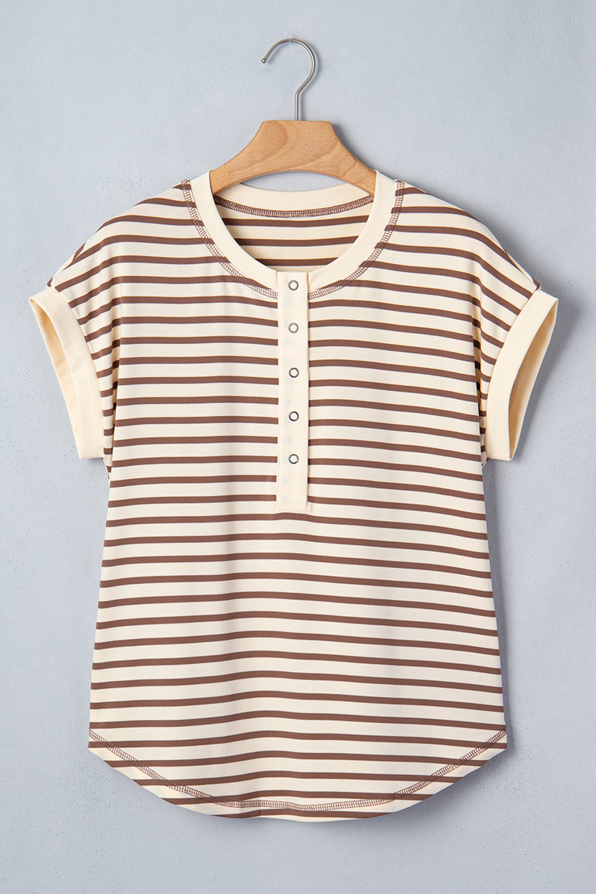 Reach for Keira Stripe Half T Shirt whenever you want comfort, confidence, and simple styling. Casual striped T-shirt with a classic round neck and half-button detail. Soft, breathable textured fabric keeps you cool and comfy all day long. Timeless stripe pattern adds a chic touch to daily looks. Perfect half-button tee for layering or wearing solo. Material: 95%Polyester+5%Elastane.