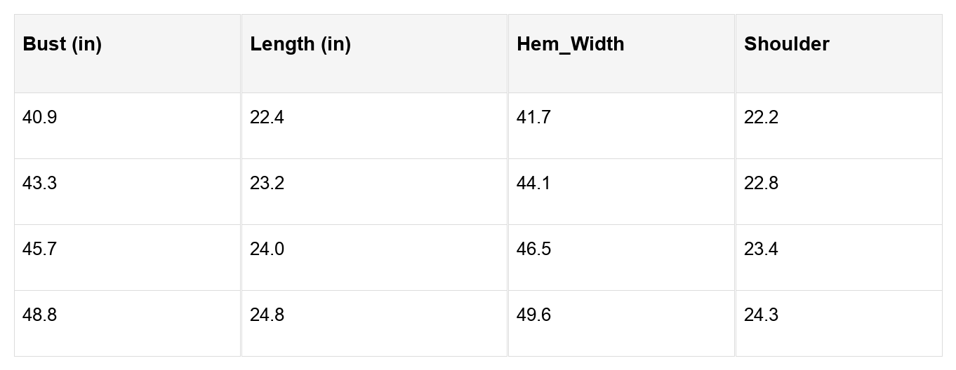 • We are not responsible for damages to clothing caused by improper care or handling or incorrect sizing.