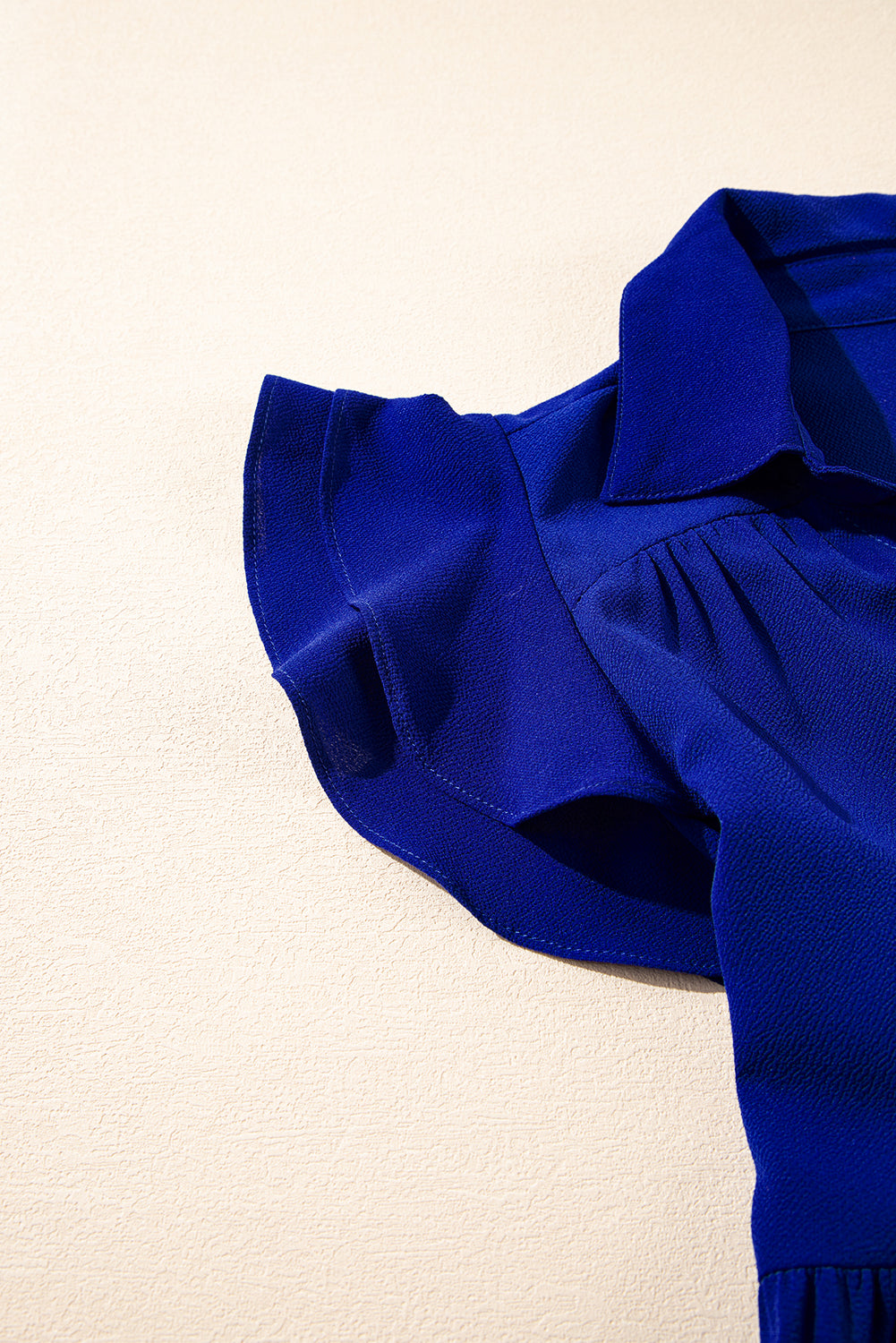Step into Zelda Collared Tiered Midi Dress for an effortless look that feels as good as it looks. This solid dress provides a versatile and classic option. Elevate your look with the playful ruffled sleeves. Flatter your neckline with the V neck, creating an elegant and elongated silhouette. Embrace the romantic vibes with the tiered detailing. Material: 100%Polyester.