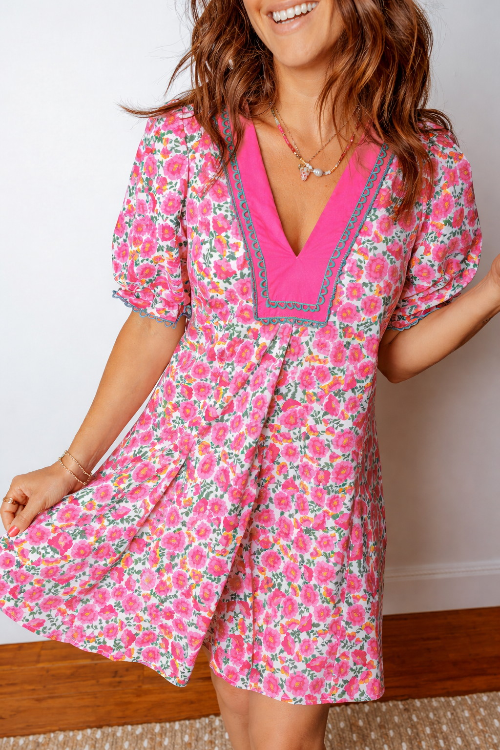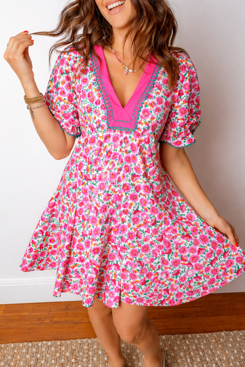 Dress in Annika Bubble Sleeve Mini Dress when you want a relaxed fit that still feels polished. With a vibrant floral print, this short dress is graceful and gorgeous. Features a feminine V-neck and short bubble sleeves to make this floral dress more elegant. A relaxed silhouette that ends in a mini dress length hemline. Suitable for parties, and daily wear. Material: 55%Cotton+45%Viscose.