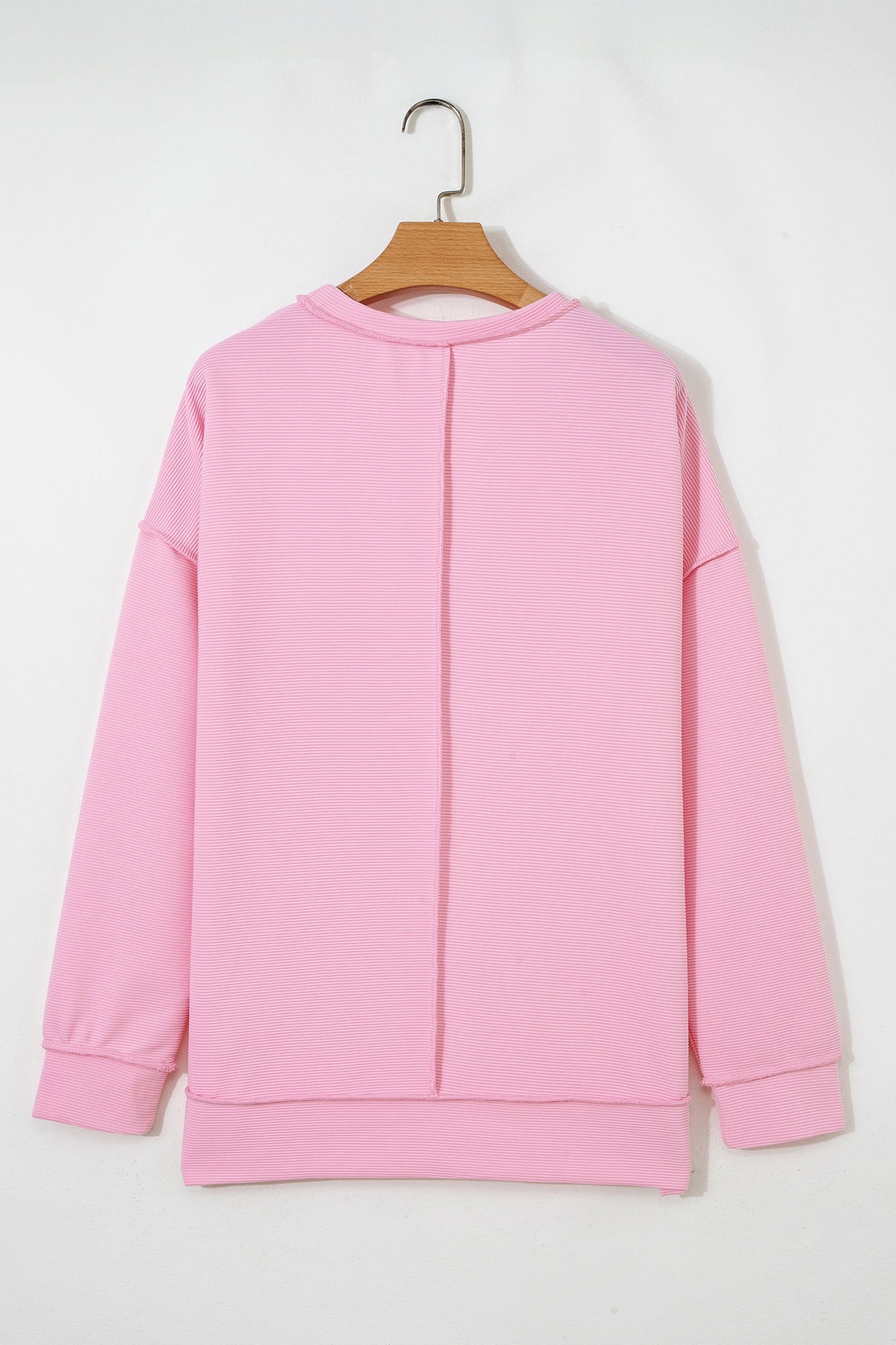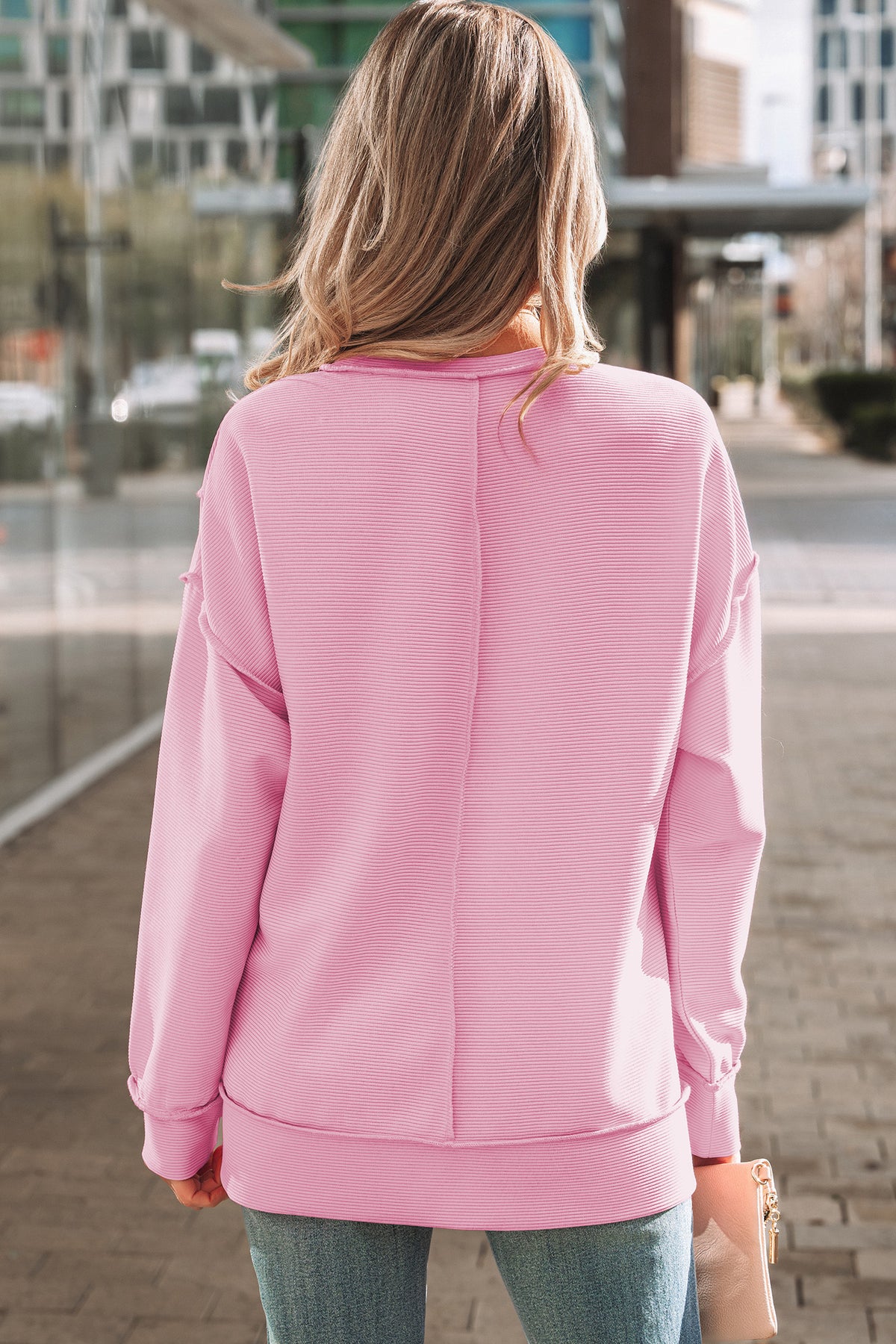 Step into Liv Drop Shoulder Baggy Pullover for an effortless look that feels as good as it looks. Horizontal ribbed pullover offers a cozy, textured look for daily wear. Exposed seam detail adds a trendy, deconstructed edge to the style. Drop shoulder design enhances the relaxed, baggy pullover fit. Soft, stretchy fabric keeps this ribbed top comfy and easy to layer. A versatile pullover perfect for casual outings, travel, or lounge days. Material: 95%Polyester+5%Elastane.