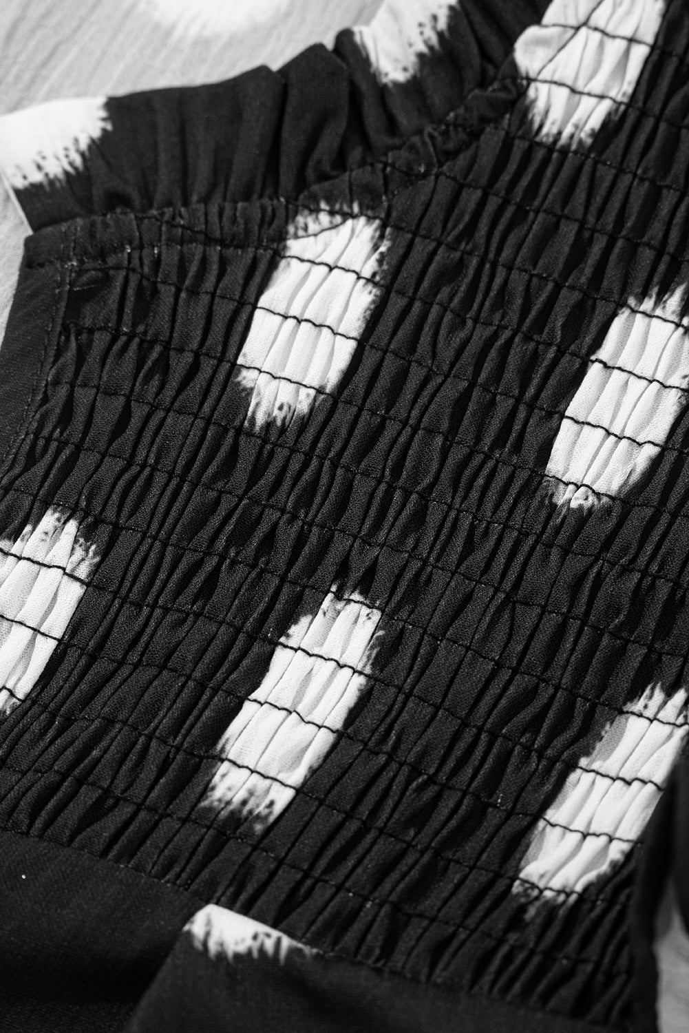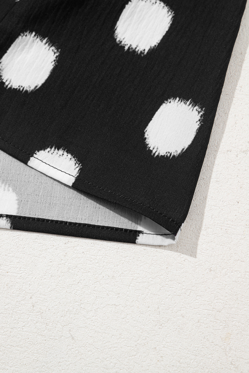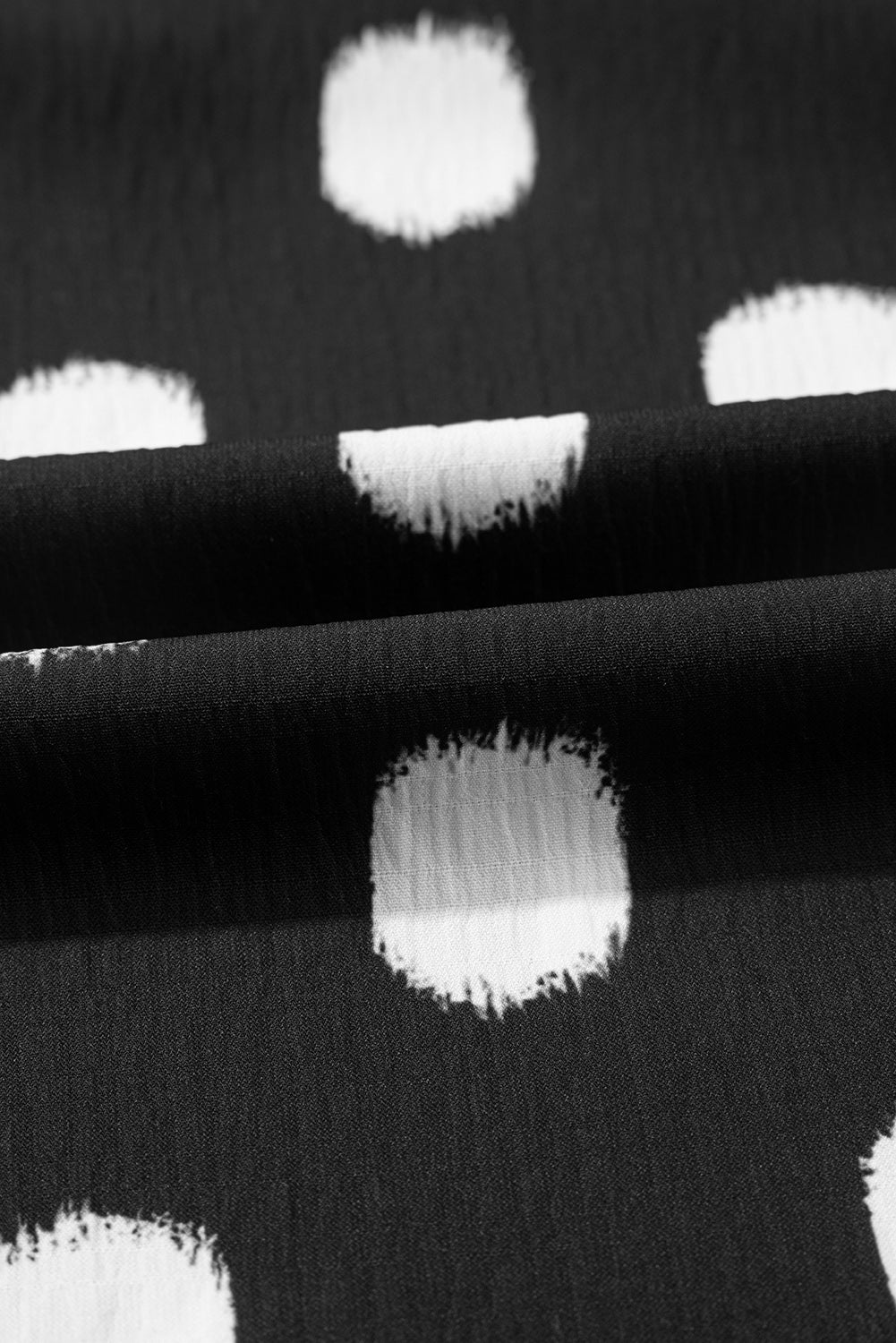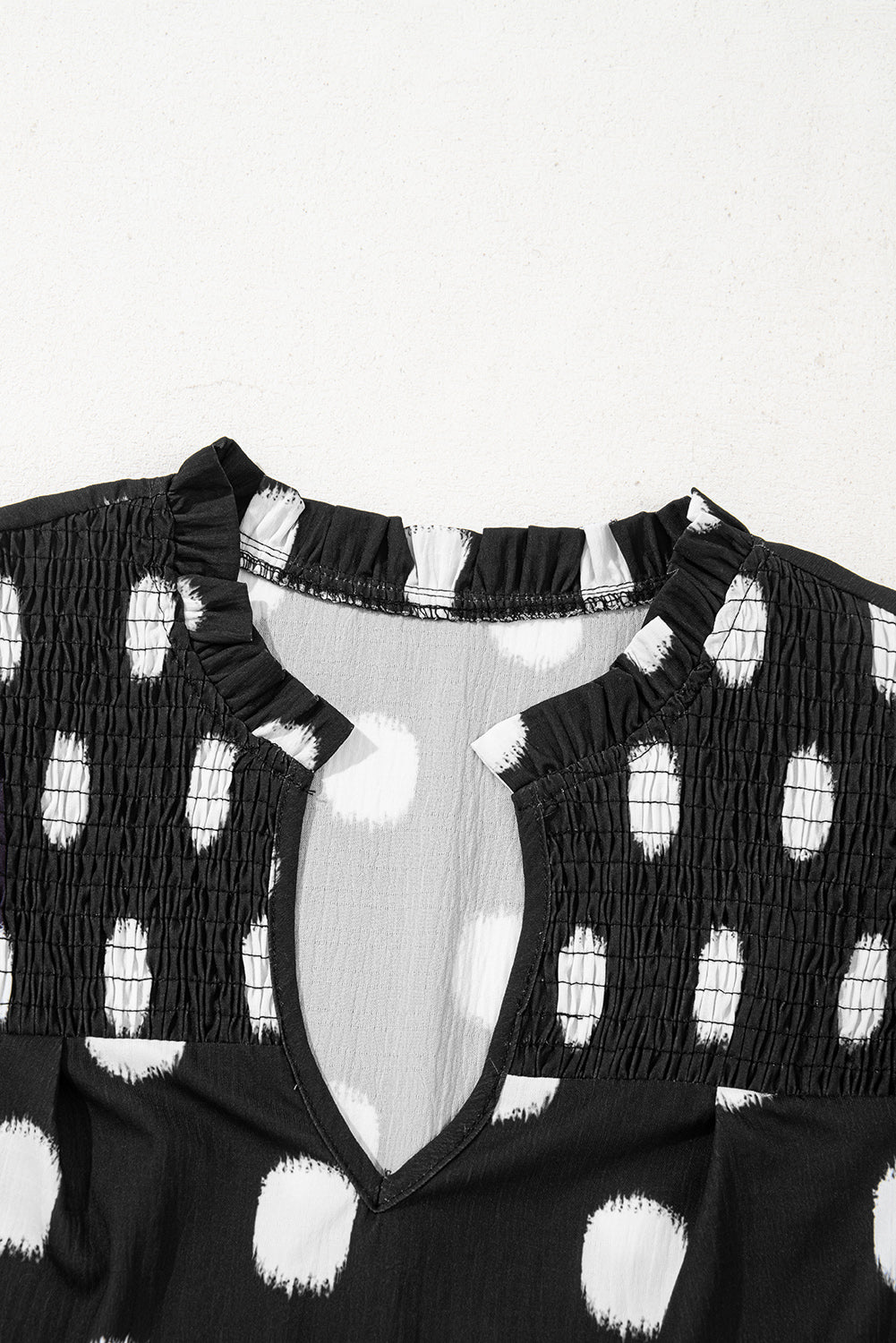 Pull on Nola Notched Balloon Sleeve Blouse for an instant outfit that feels laid-back but looks styled. All chic elements of this blouse make it appealing. The polka dot pattern adds sweet and elegant flair to this top. The notched v neck with frilled collar make its grace to the ultra. Ruffles on shoulder, shirred yoke and balloon sleeve. Material: 100%Polyester.