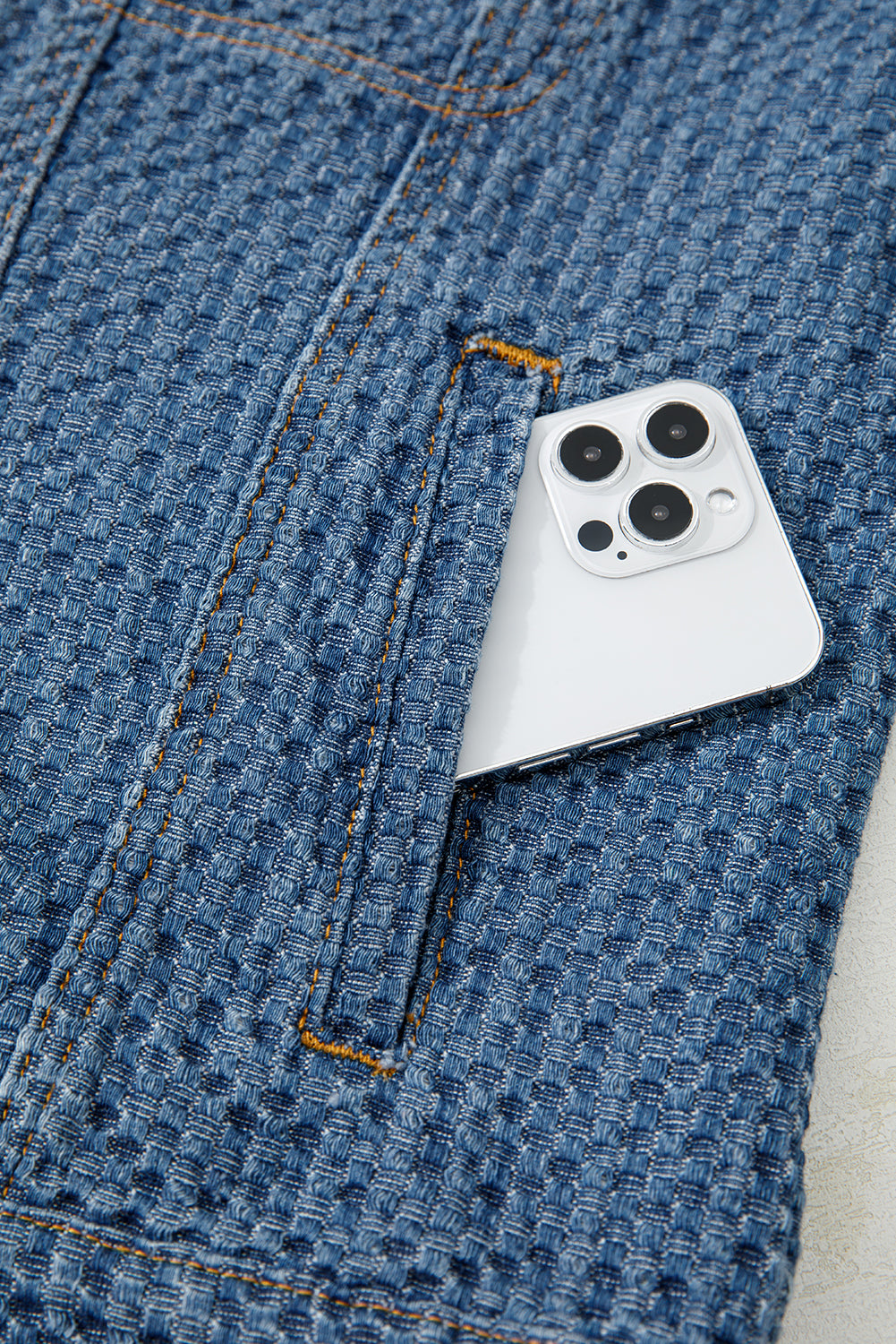 Meet Rosalyn Flap Textured Down Jacket—effortless, flattering, and easy to style for everyday life. This denim jacket will instantly be your new favorite. Made from quality cotton material with little stretch. Featuring a chic textured design and a relaxed silhouette. Classic shirt collar button down style is well-received by all ages.