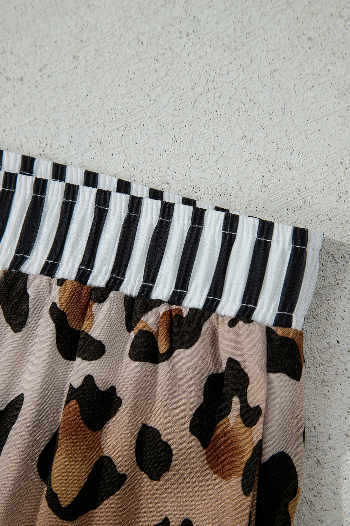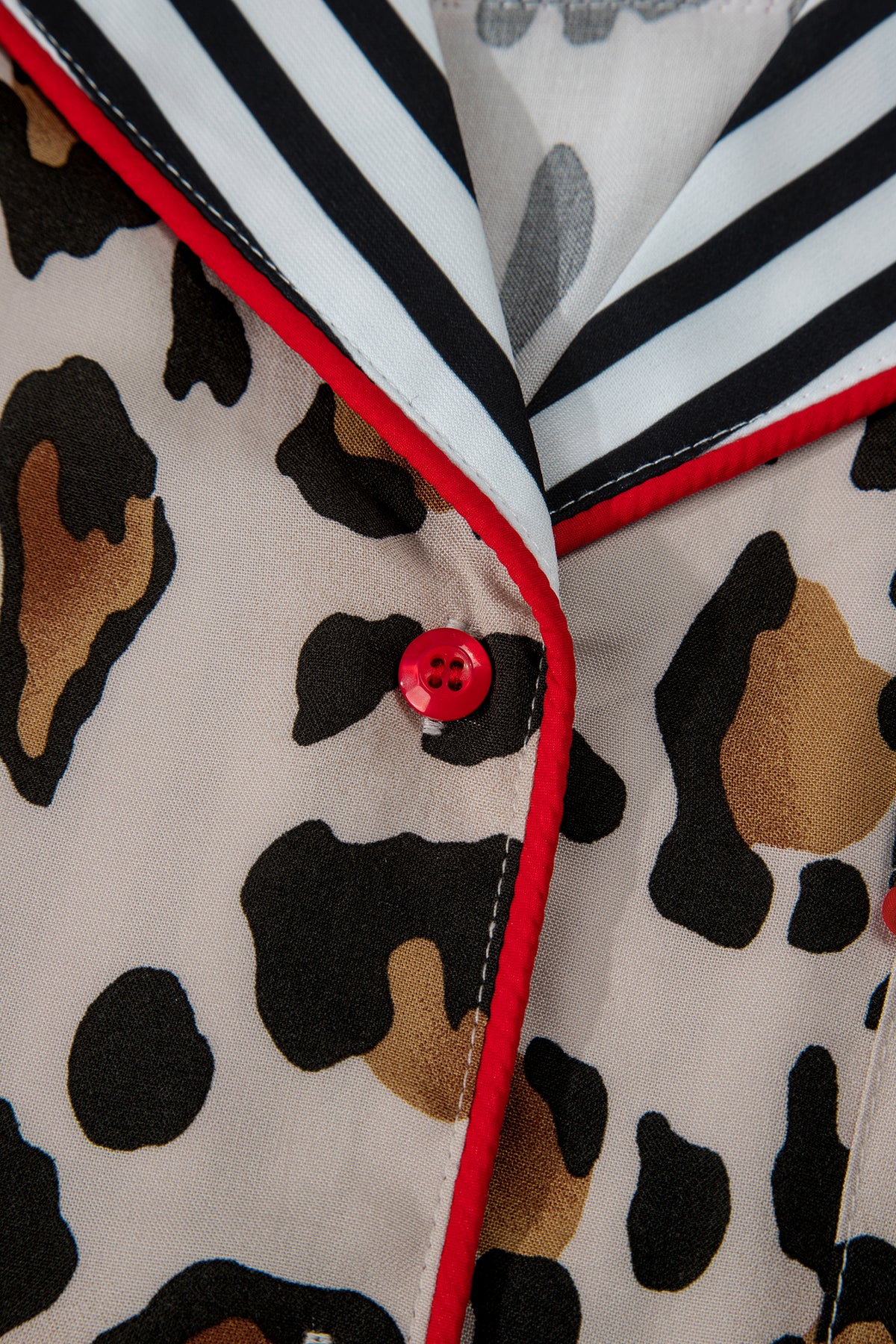Step into Etta 2pcs Long Pajama PLUS Set for an effortless look that feels as good as it looks. Stylish leopard print pajamas with striped patchwork for a bold, chic look. Soft plus size pajama set offers relaxed comfort for day-to-night wear. Contrast piping adds a refined, elevated touch to the cozy silhouette. Long sleeves and pants provide full coverage and breathable warmth. Material: 100%Viscose.