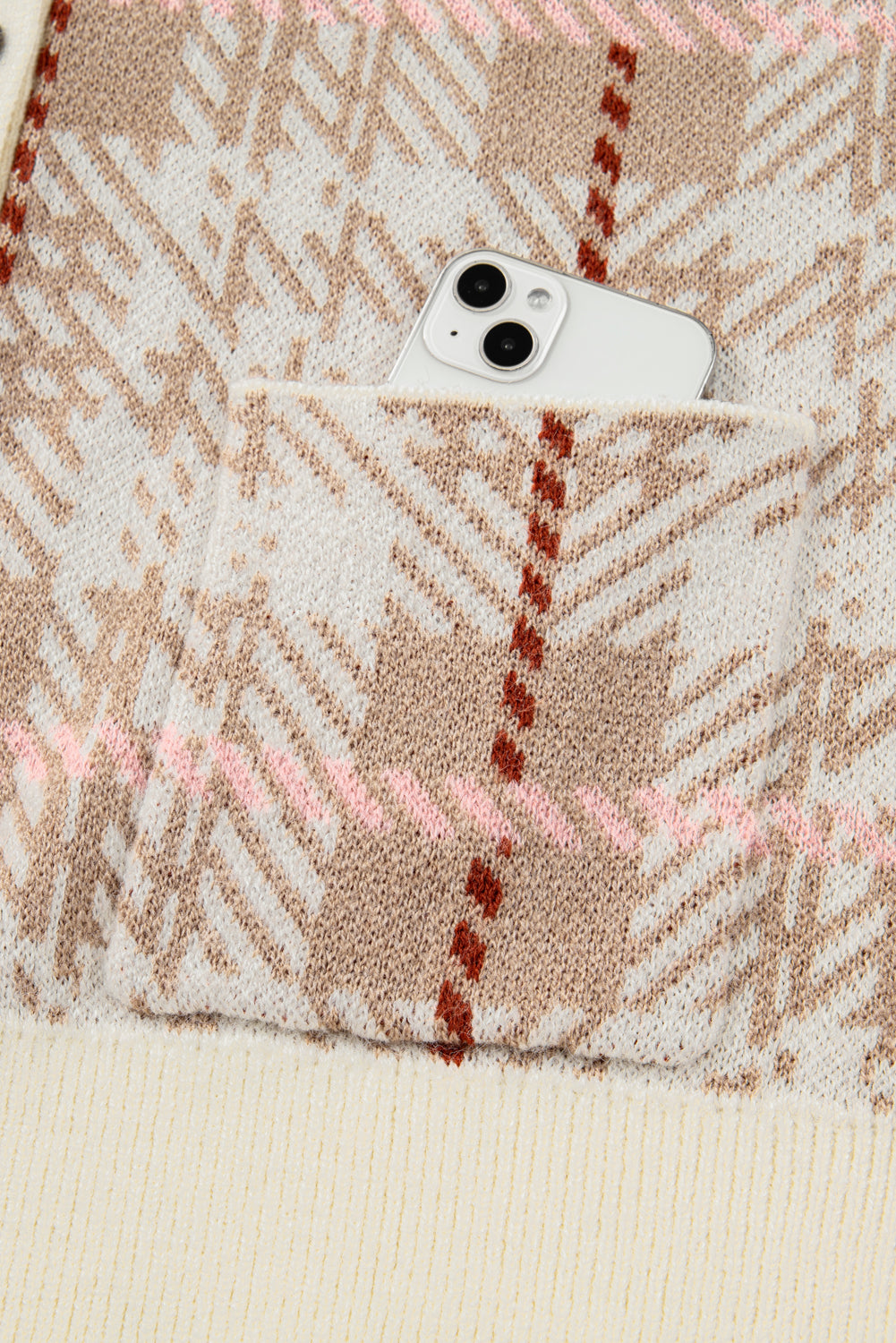 Navy Trim Front Cardigan PLUS Sweater is designed to move with you and keep you comfortable all day long. Classic vintage pattern adds timeless charm to this plus size cardigan sweater. Ribbed trim detailing enhances fit and style for casual wear. Button front closure offers easy layering for fall and winter fashion. Plus size design provides comfortable, flattering fit for all body types. Material: 65%Acrylic+35%Polyamide.