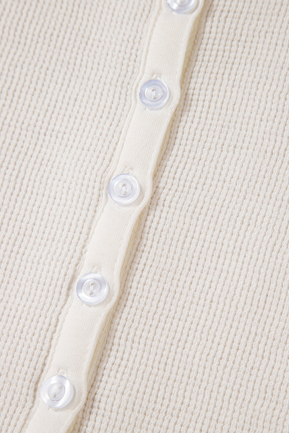 Meet Teresa Color Waffle Half Long Sleeve Top—effortless, flattering, and easy to style for everyday life. The plain top offers a cozy and stylish option for a classic look. The waffle texture adds depth and a unique feel to this top. The half button front provides a modern twist. This top pairs well with various bottoms for a polished outfit. long sleeve tops offer versatility for different weather conditions. Material: 65%Polyester+30%Cotton+5%Elastane.