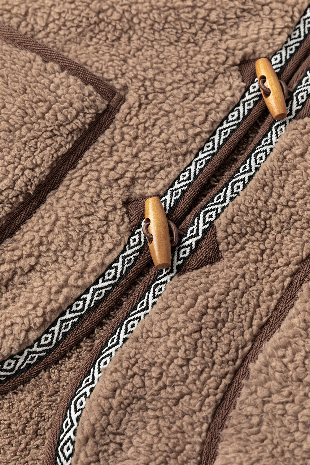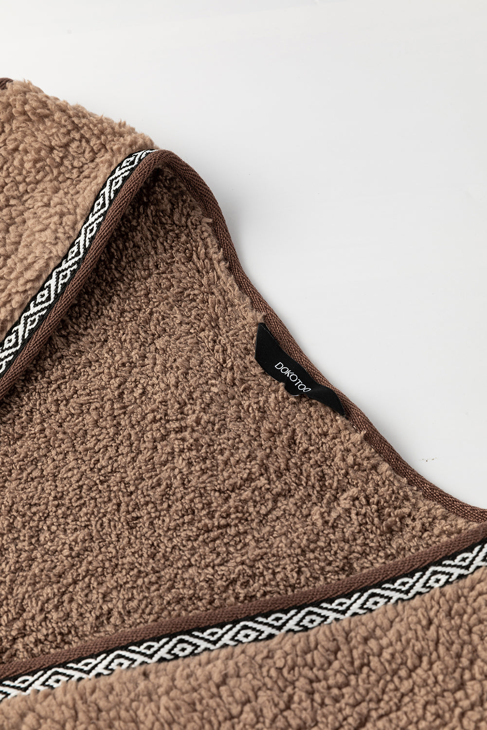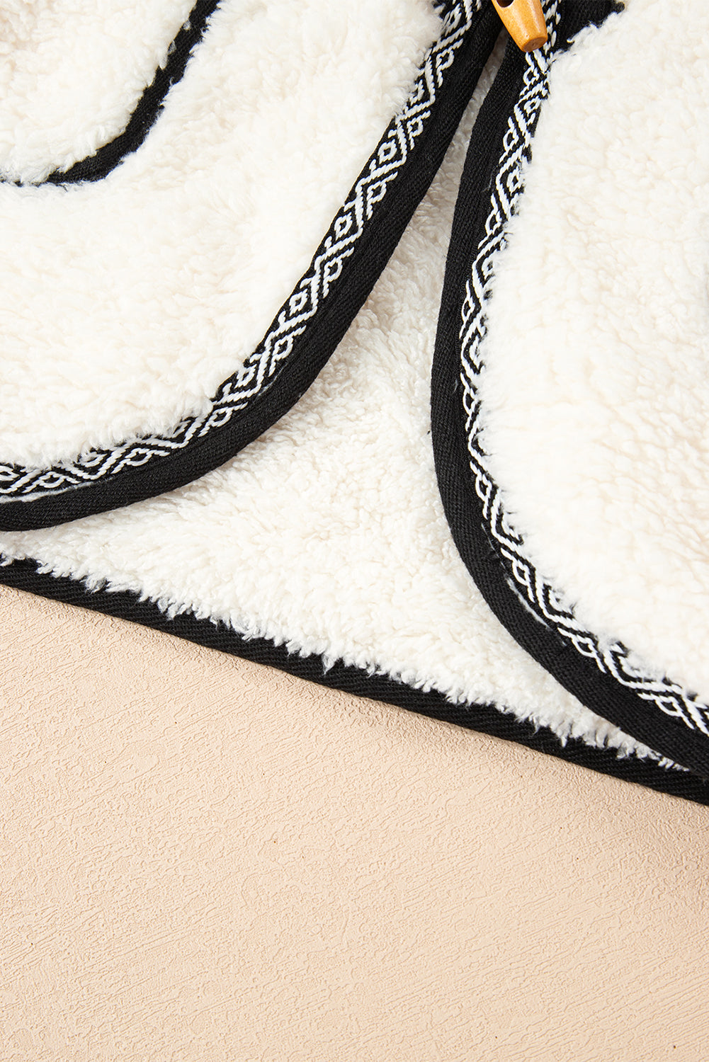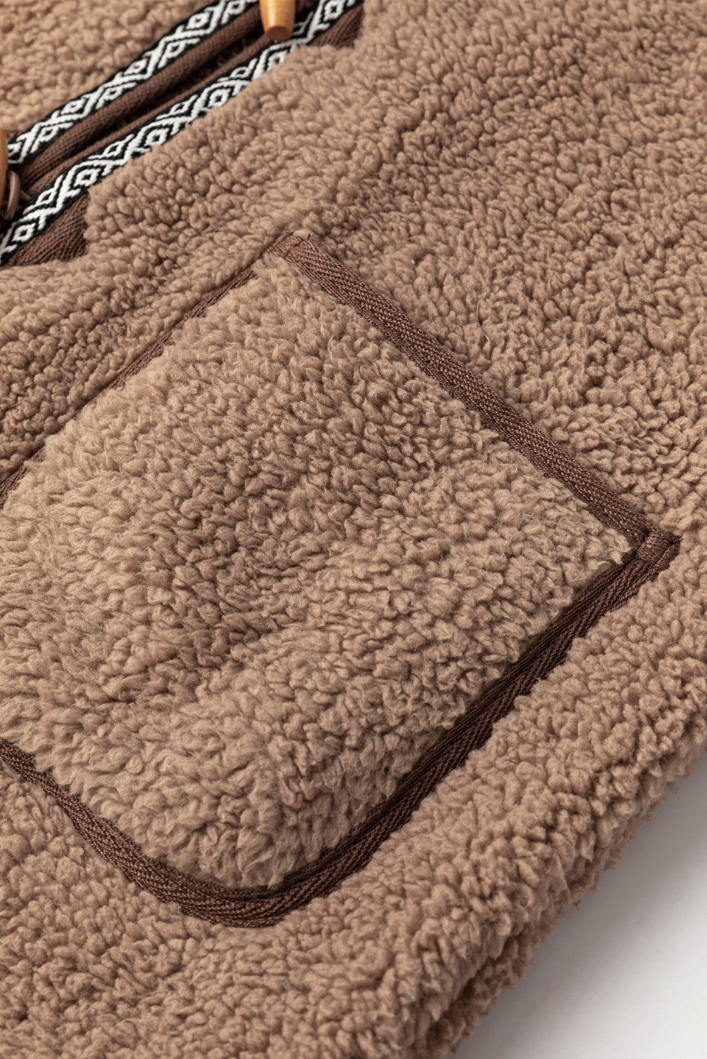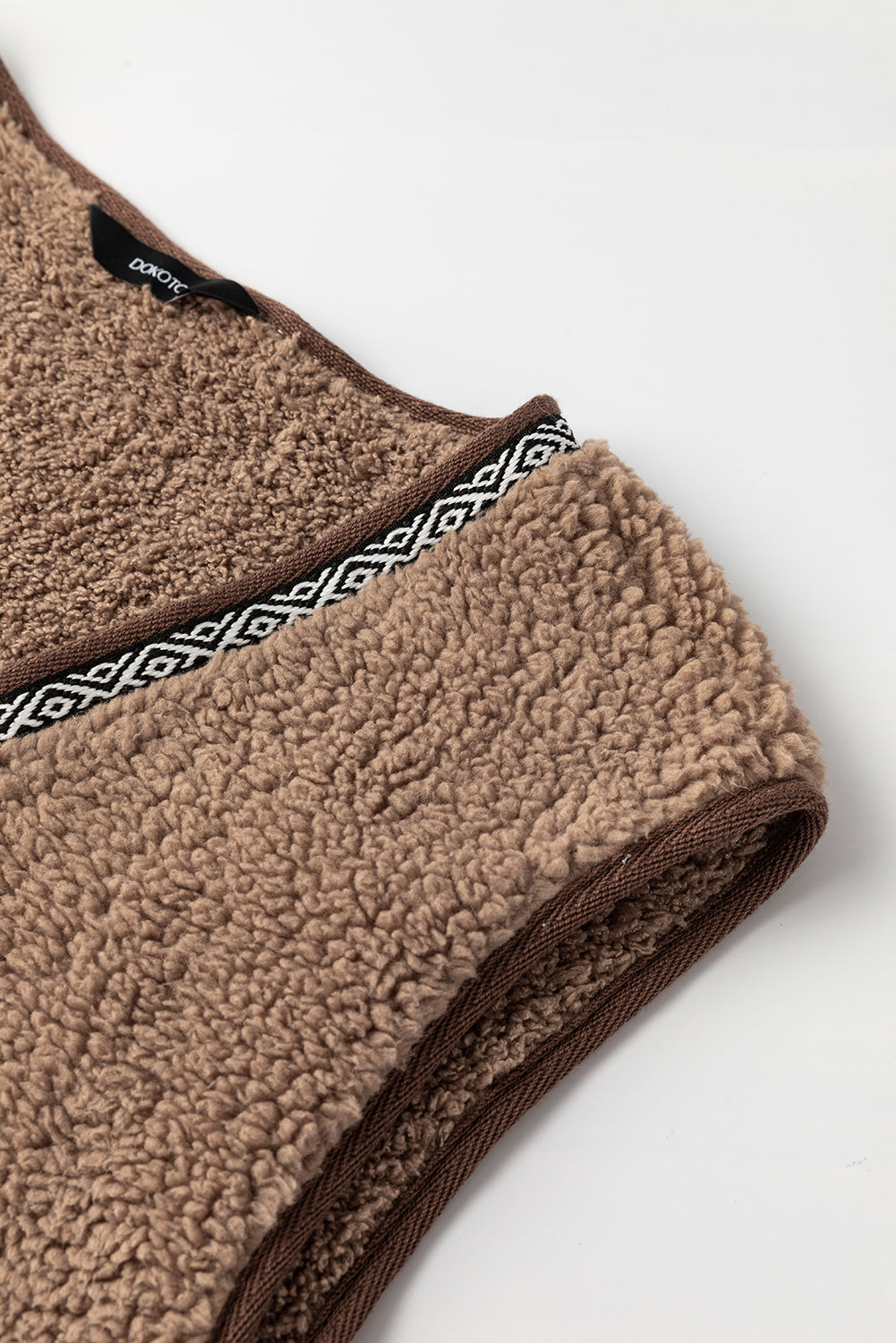 Meet Harper Patch Cartridge toggle Vest—effortless, flattering, and easy to style for everyday life. This fuzzy vest feels like a cozy blanket on your body. It features two hand pockets patched with contrast trim. This v neckline and relaxed silhouette are well-received. The cozy sherpa fabric is very suitable for autumn and winter wear. Buy cozy sherpa vests for women at prices from . Material: 100%Polyester.