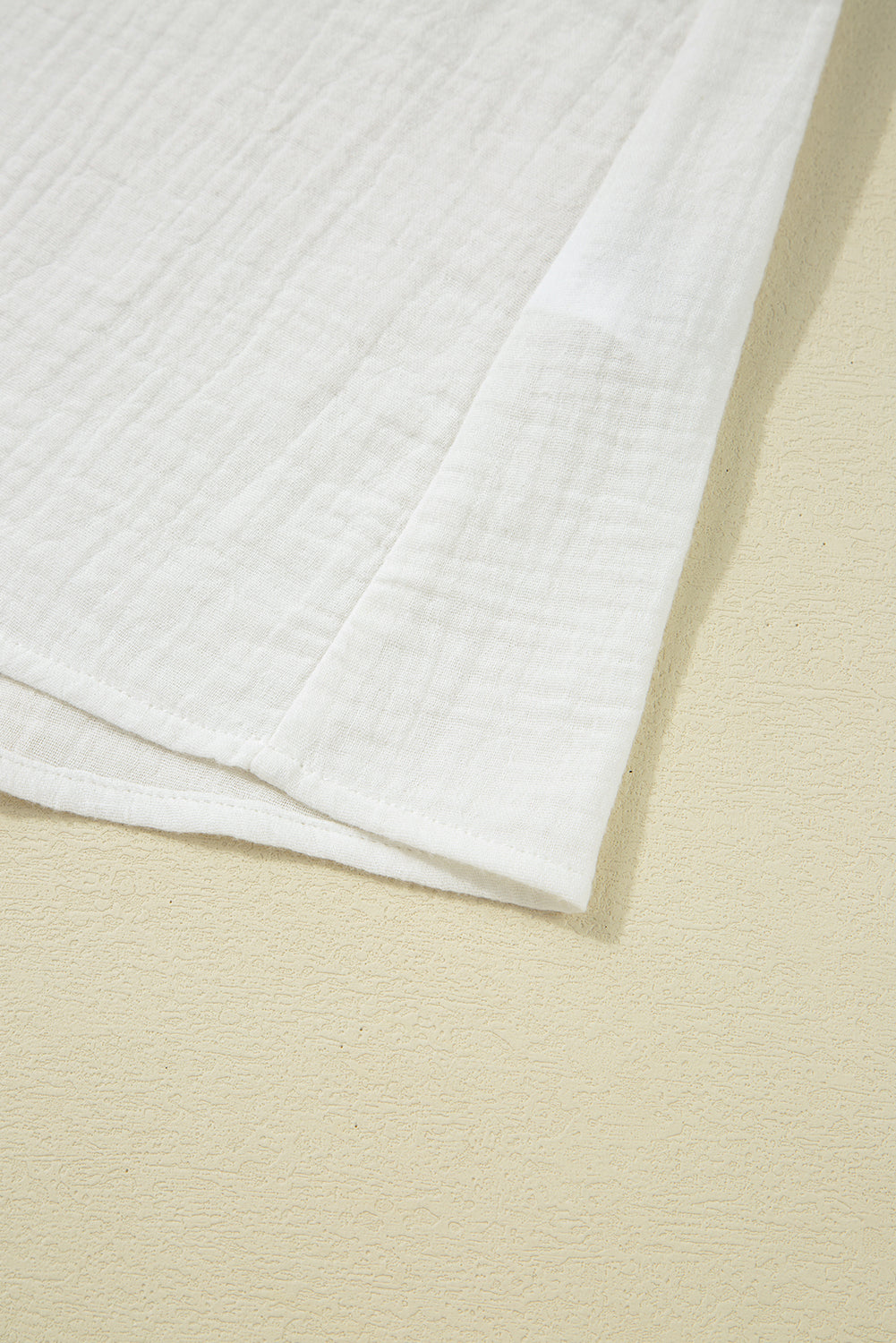 Cecelia Ruffled Flutter Sleeve Blouse is your new go-to piece when you want to feel cute and comfortable. This crinkled blouse embraces a textured look for women. Elevate your style with the classic solid color for versatility and easy pairing. Add a touch of flair with the layered ruffled flutter sleeves for a playful aesthetic. Complete the look with the timeless crew neck for a polished finish. Material: 100%Cotton.