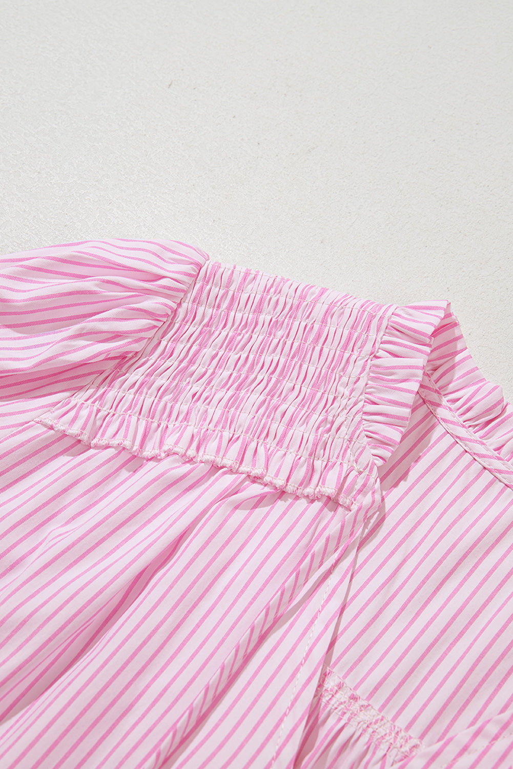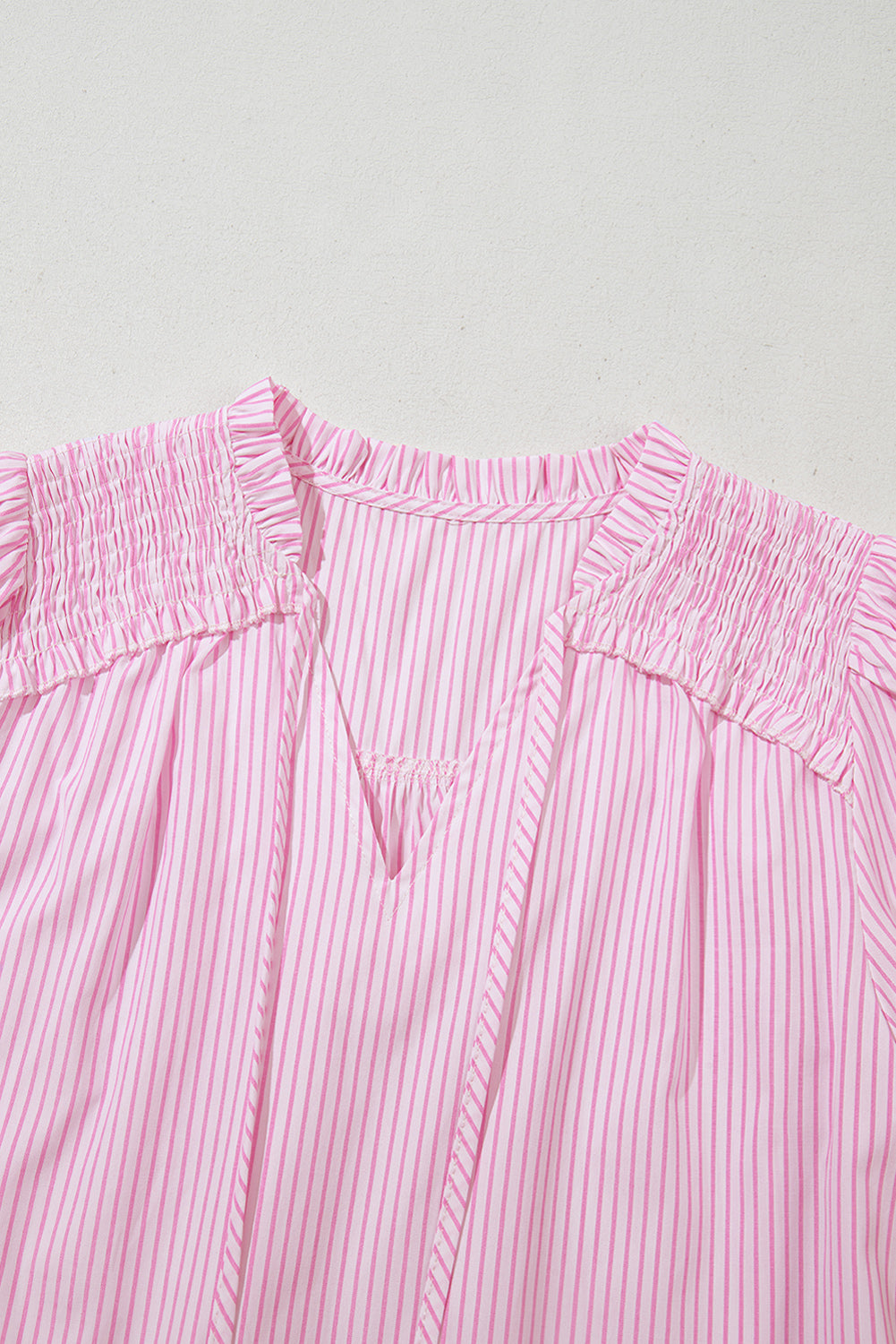 Throw on Gemma Puff Half Sleeve Blouse when you need an easy outfit that still looks pulled together. This womens blouse will never out of fashion with a striped silhouette. The v neck is feminine highlighting a slim face shape. The shirred shoulder adds chic detail to this blouse top. This striped blouse pairs well with any solid pants.