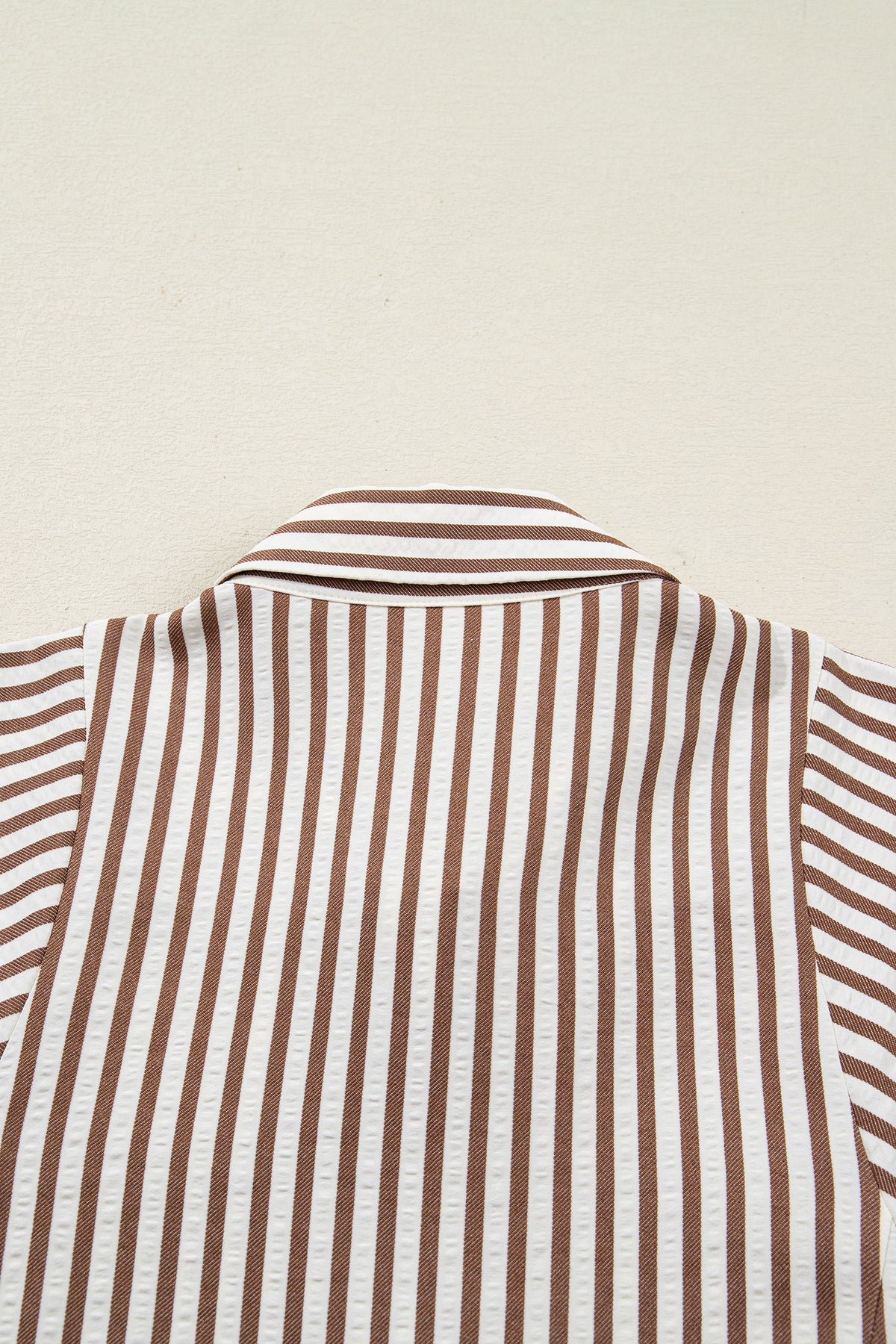 Hanna Sleeve Down Mini Shirt is the piece you'll reach for when you want to look put together in seconds. Striped shirt dress with knot waist offers a flattering silhouette. Puff sleeves add volume for a playful, on-trend look. Button-down front makes this dress easy to style and wear. The mini length finished is perfect to show off sexy legs and pairs well with boots. Material: 50%Polyester+50%Viscose.