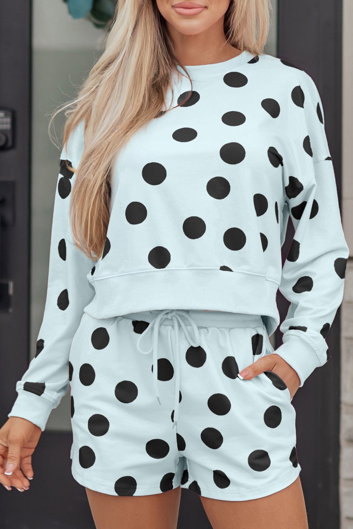 Lia Shoulder Pullover Drawstring Shorts is made for real life—easy to wear, easy to love. Cute polka dot set offering a relaxed, stylish look for everyday comfort. Drop shoulder pullover top adds a trendy, effortless vibe to your outfit. Soft drawstring shorts give a customizable comfort for lounging or casual wear. A versatile polka dot lounge set that pairs easily with sneakers or slides. Material: 95%Polyester+5%Elastane.
