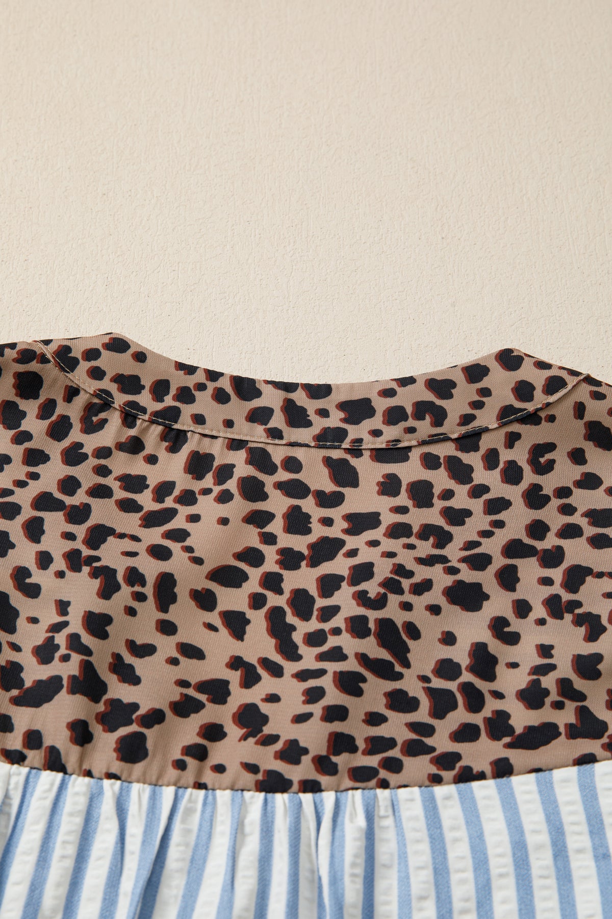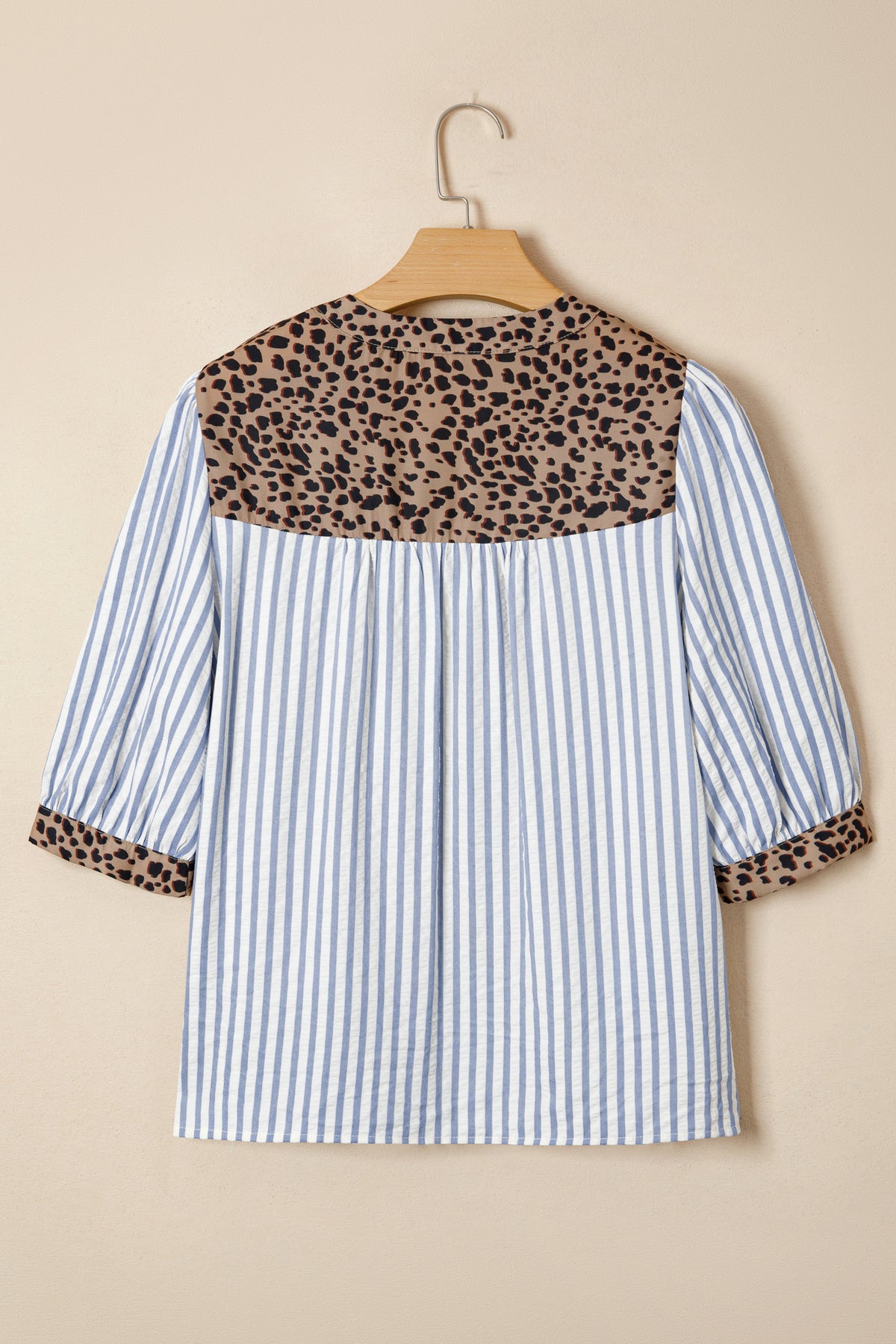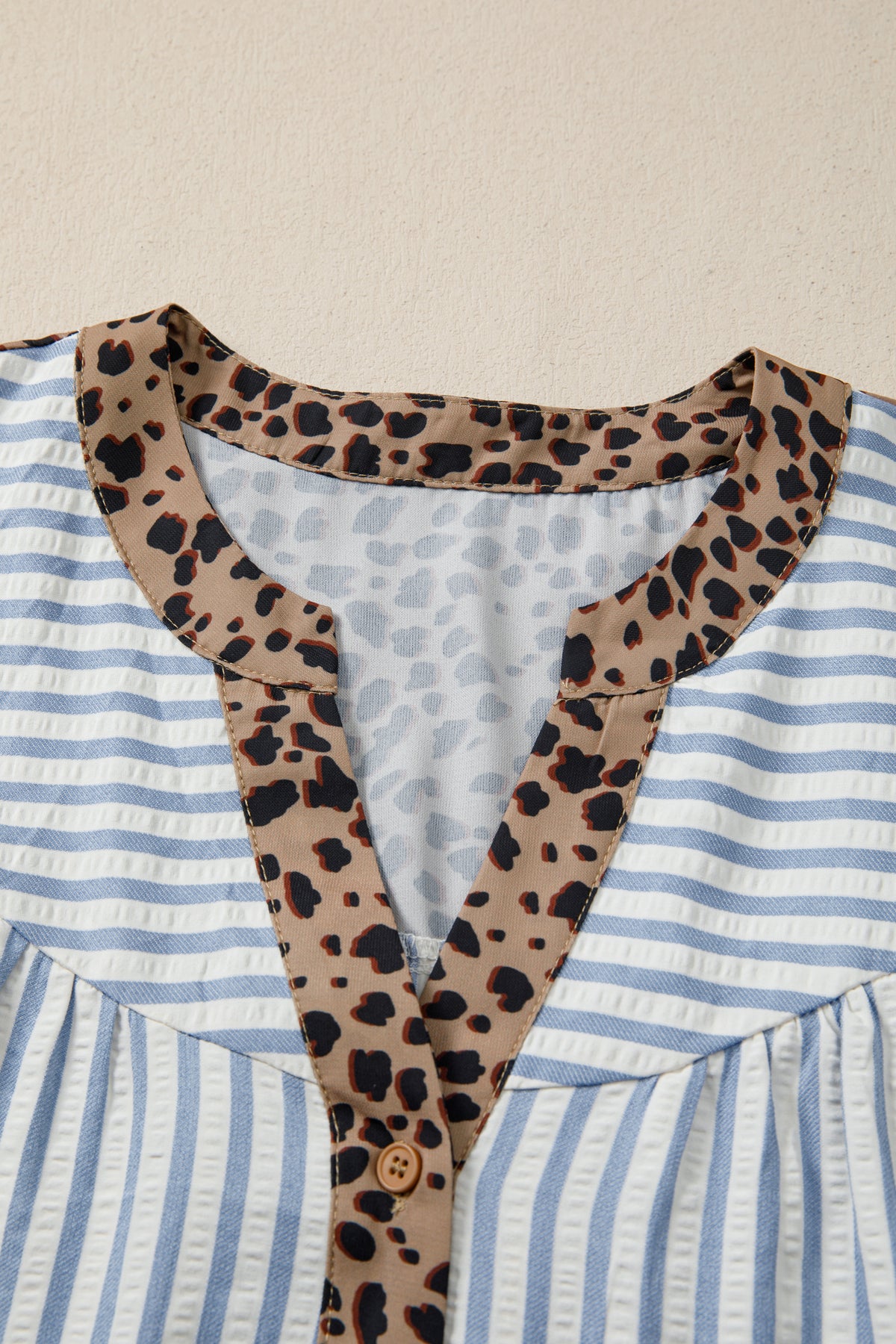 Stay comfy and put-together all at once in Lucy Down Half Sleeve Shirt. Trendy striped V neck shirt with chic leopard trim detail for bold contrast. Button down front and half sleeves create an easy, flattering silhouette. Breathable lightweight fabric keeps you cool and comfy all day long. Perfect casual shirt to style with jeans, skirts, or tailored pants. Material: 50%Polyester+50%Viscose.