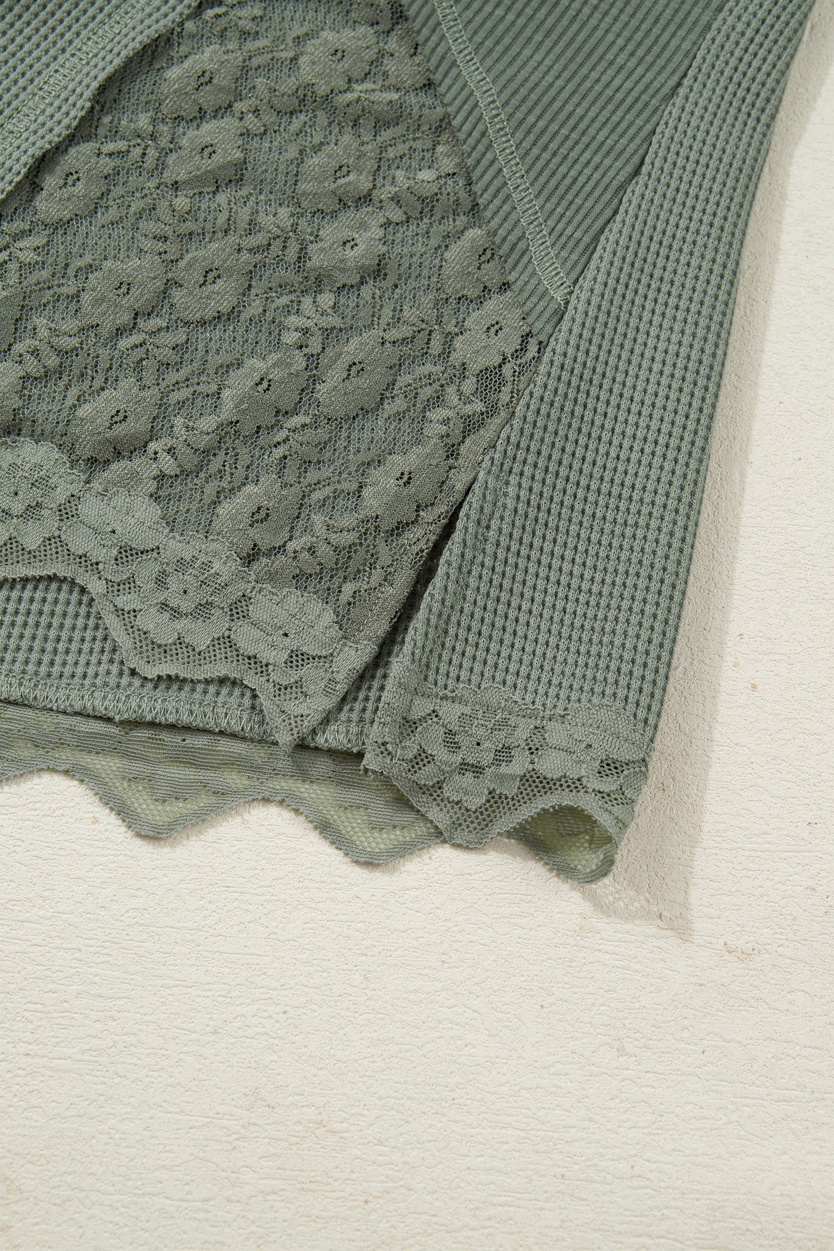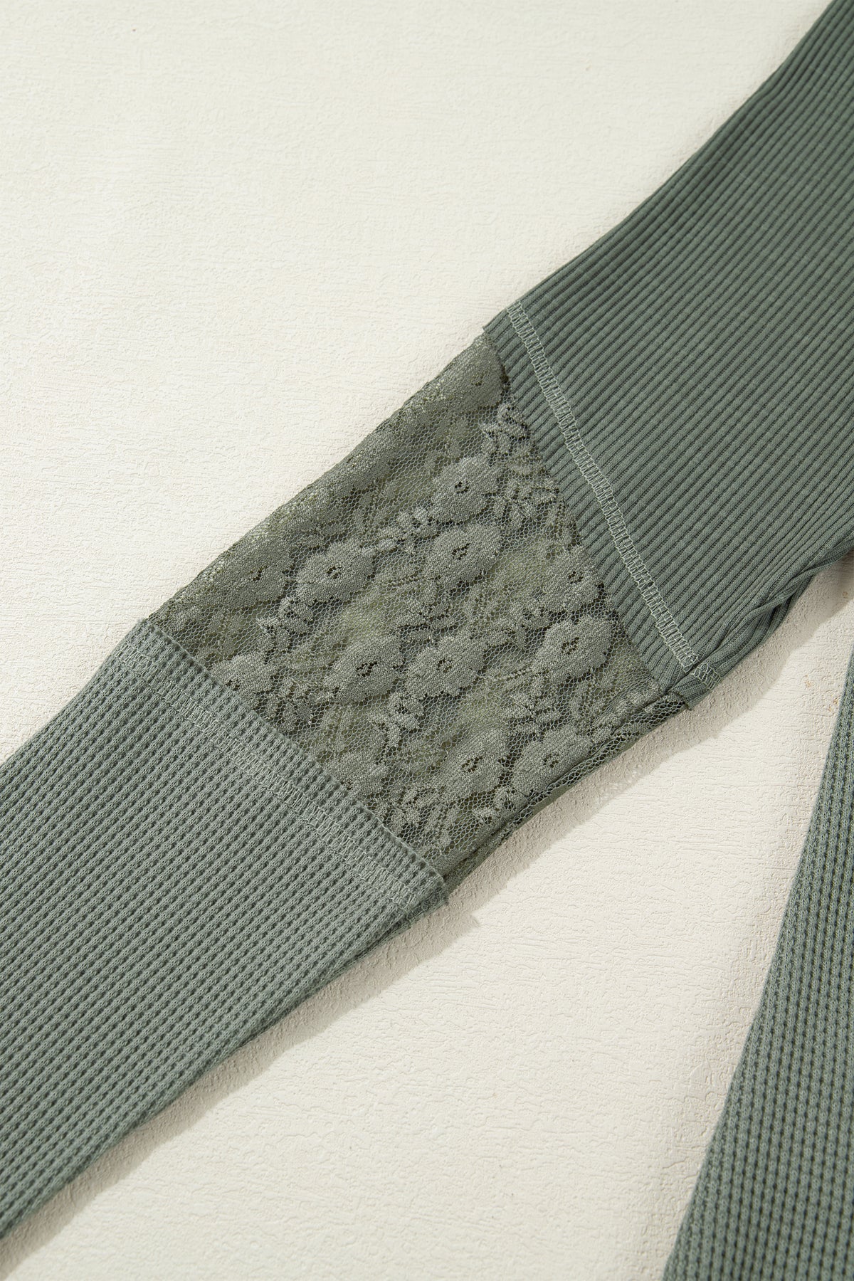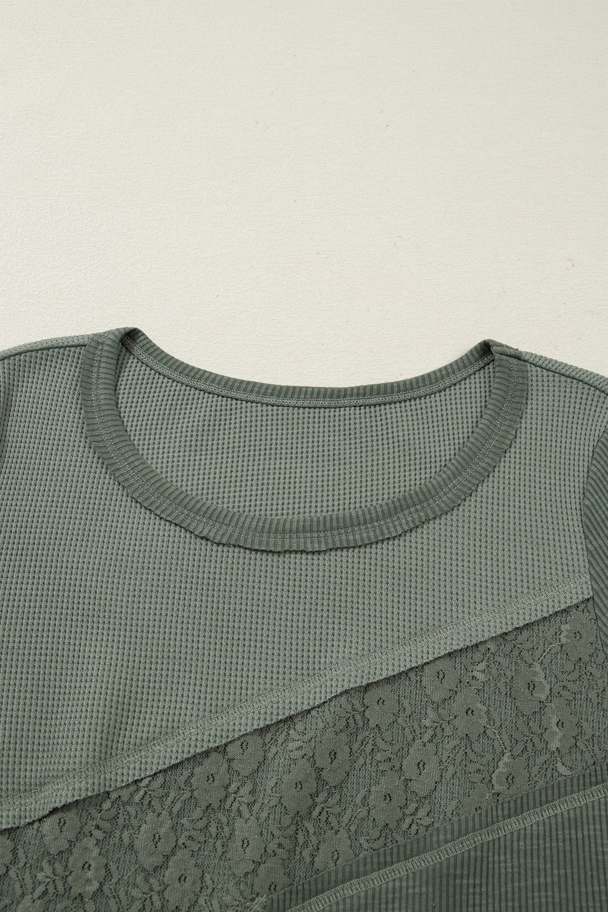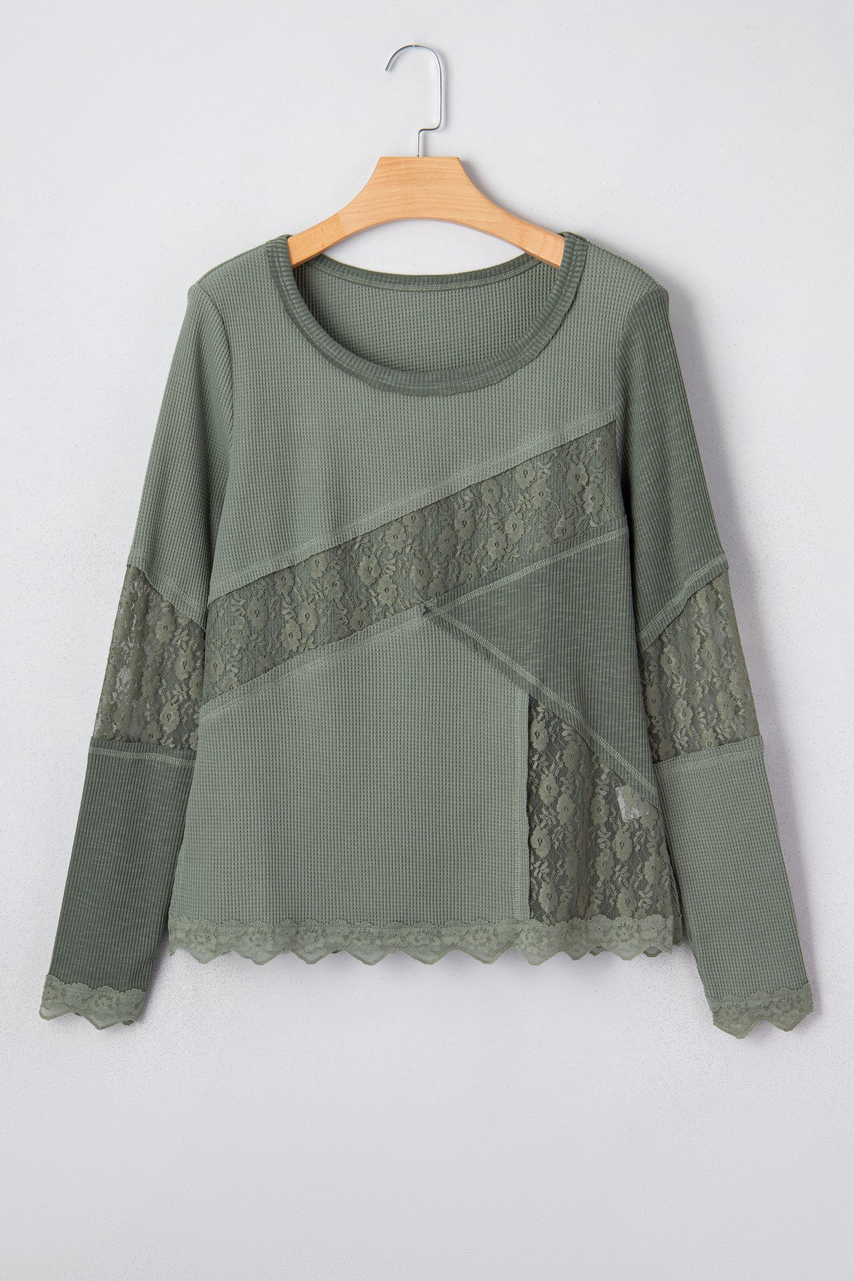 Miriam Ribbed Lace Patchwork Long Sleeve Top