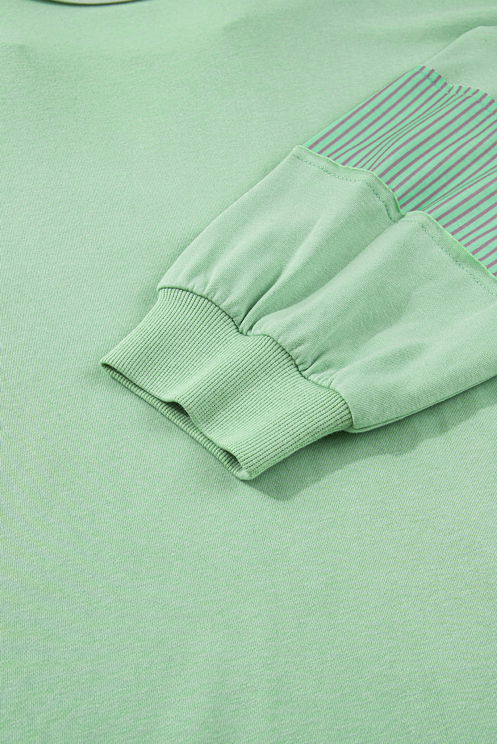 Meet Moonlight Jade Color Block Striped Patchwork Collar V Neck Plus Size Sweatshirt—effortless, flattering, and easy to style for everyday life. Stay stylish and comfortable in this plus size sweatshirt. The green color makes this curvy top energetic. The patchwork design adds unique detail and chicness. Plus size fit ensures a flattering silhouette for all body types. plus size sweatshirts are popular for spring fall.