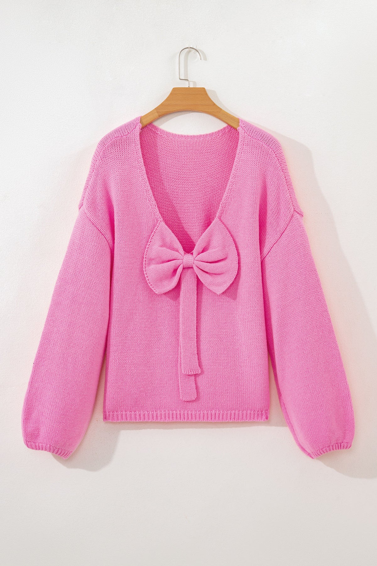 Pull on Olivia Backless Bubble Sleeve Sweater for an instant outfit that feels laid-back but looks styled. This solid sweater with a festive bow is perfect for the season. The backless design showcases a touch of allure. The bubble sleeves make it elegant and dressy. This elegant sweater pairs well with both chic jeans and half skirts. Material: 65%Acrylic+35%Polyamide.